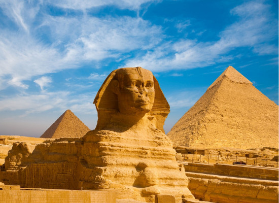Egypt is a country that links northeastern Africa with the Middle East, dating back to the time of the Pharaohs. Monuments dating back thousands of years lie along the fertile Nile River Valley, including the massive Pyramids of Giza and the Sphinx.